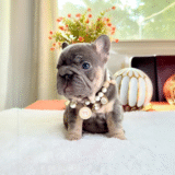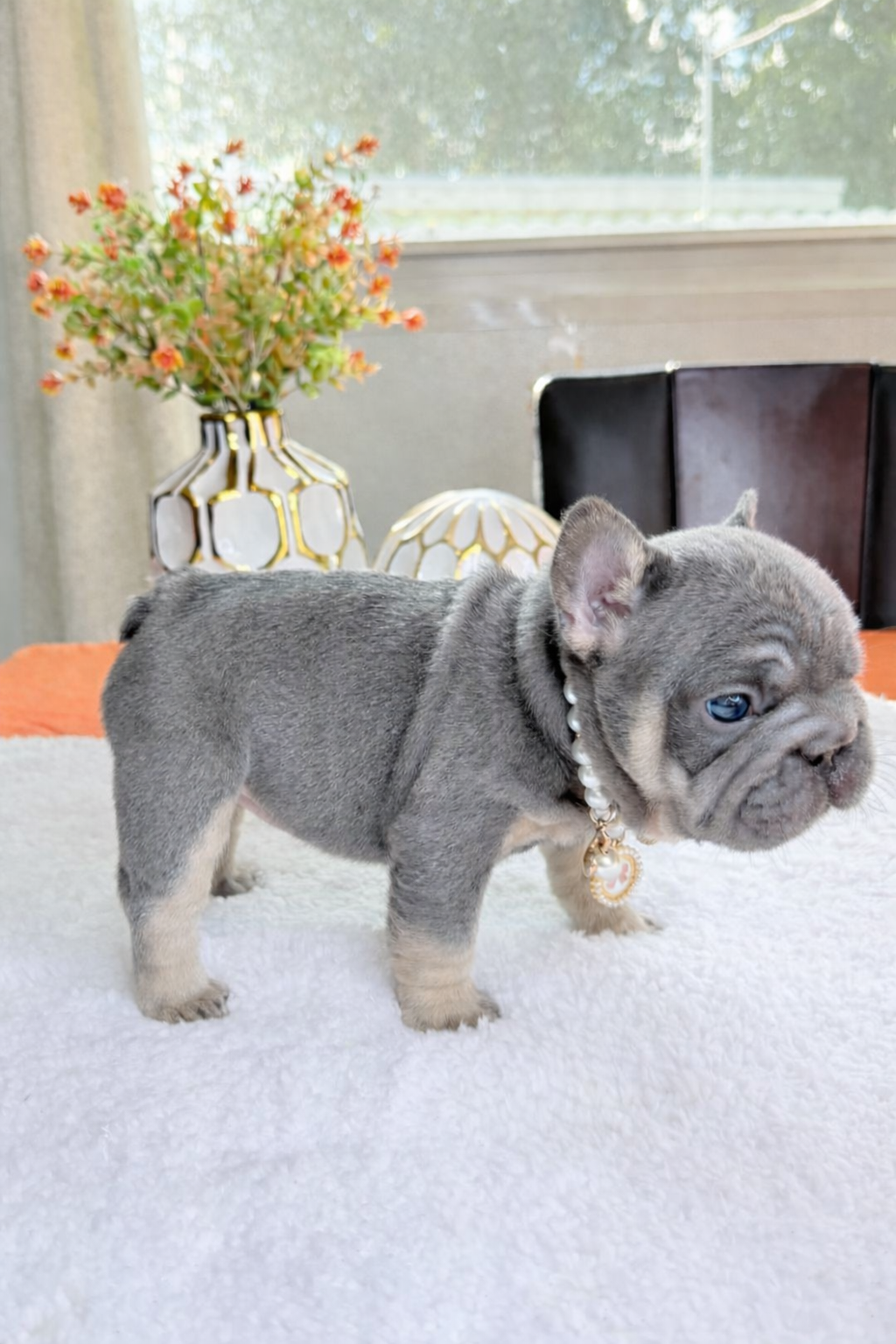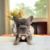 Maxine is an energetic blue and tan fluffy female French Bulldog puppy and a fluffy carrier. Her lively spirit and adorable looks make her a great addition to any home. Raised with care and health-tested. AKC registration available.