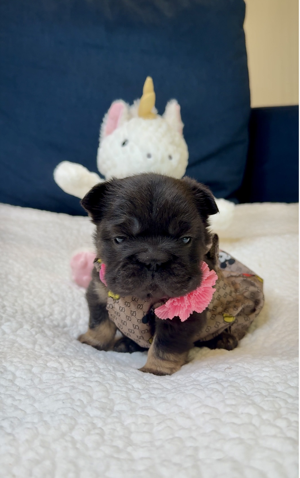 Poppy🌸 the tiniest black and tan fluffy girl with the sweetest little face.